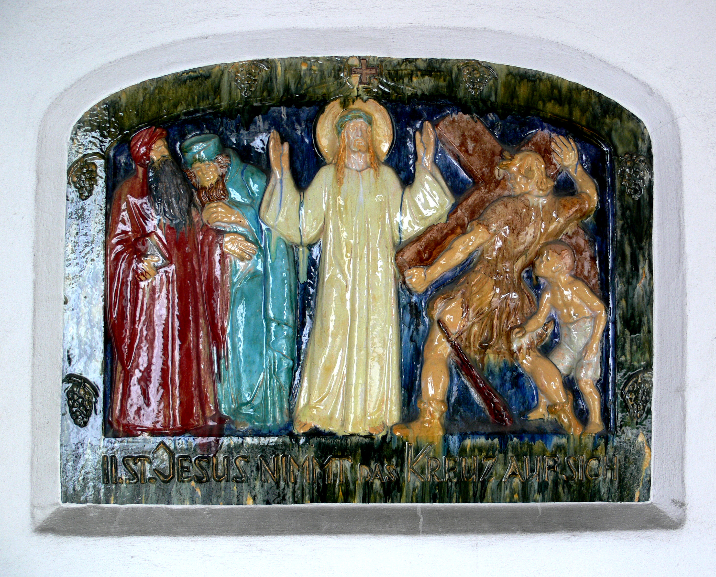 Er ist allerdings nicht nur Bildwerk, sondern auch Entwicklungsweg. Hier der „Werdeweg des Gottessohnes zum Tode“. gespeist aus einer Bilderwelt, welche Bibel und Tradition mit einbezog und auf den Menschen selbst verweist.