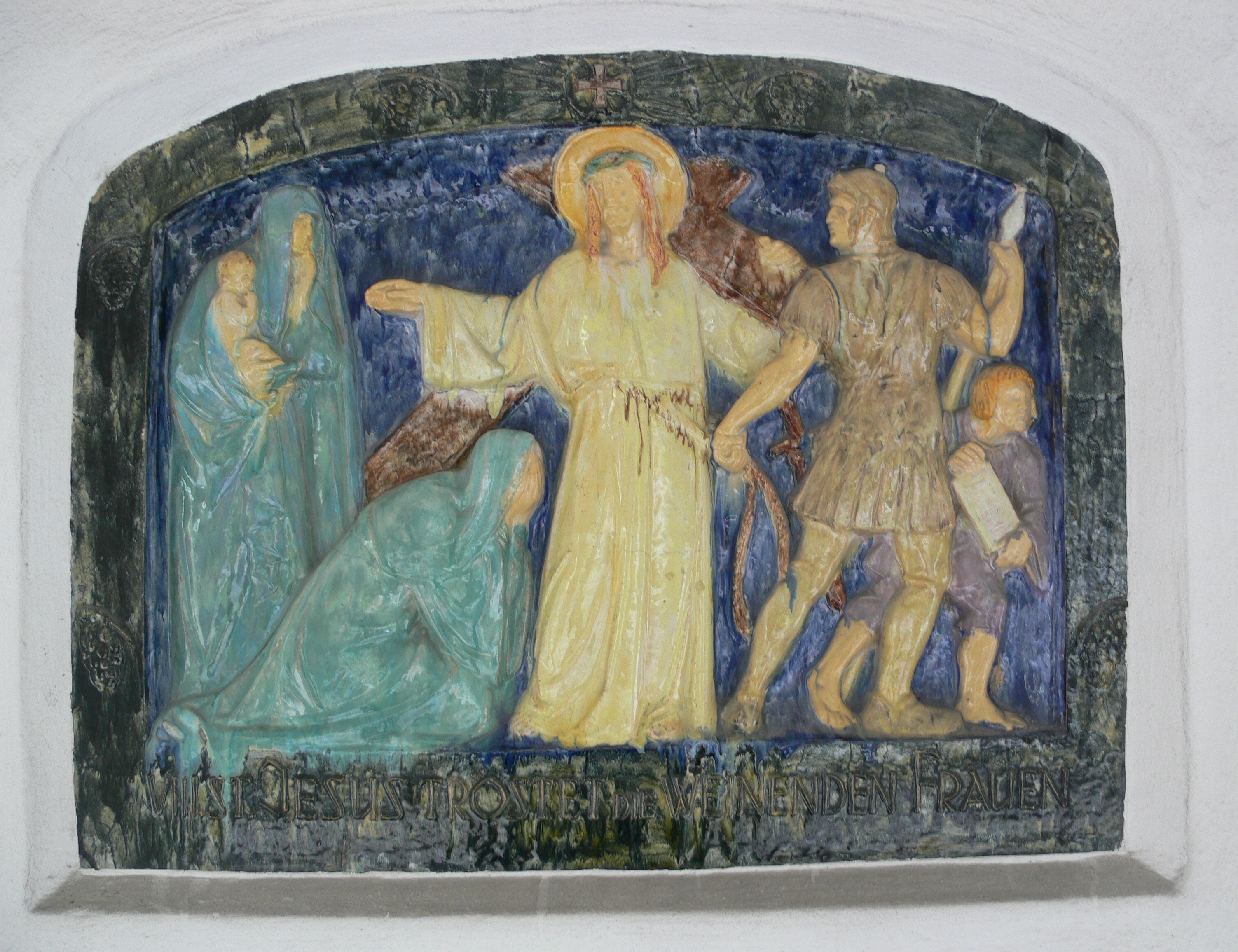 V : Die frommen Frauen weinen über den leidenden Heiland . Er aber wendet sich zu ihnen und sagt ; Weinet nicht über mich sondern über euch und eure Kinder; über die begangenen Sünden weinet, weil sie ja Schuld sind an meinem Leid. So weine denn auch Du meine Seele : Es ist Christus nichts lieber und dir nichts nützlicher als die Tränen der Reue über deine Sünden.(wird still gebetet)