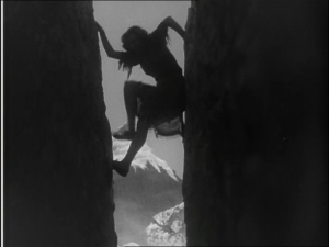 The central theme was always human surrender to the power of nature. Dr. Franks approach to his actors was physically tough. In the picture above, she must perform free climbing fifty years before it was “invented” in California. Here she discovered her love for nature, becomes professional mountaineer and acts during the most difficult shots without any double. The often confusing conditions on the set brings her also behind the camera. Her amazing talent starts to show. Those early years played a significant role in shaping Riefenstahl’s own visual approach to film-making but particularly in understanding the importance of the cutting of a movie for dynamic effects.