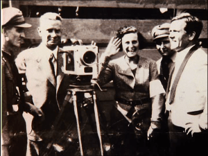 Riefenstahl’s great success was filming the 1936 Berlin Olympics, no minor undertaking. For Olympia she had to manage a total crew of 60 cinematographers and shoot over 400,000 meters of film. In the process, Riefenstahl invented or enhanced many of the techniques we now take for granted: slow motion, underwater diving shots, extremely high (from towers) and low shooting angles (from pits), panoramic aerial shots, and tracking systems for following fast action. Riefenstahl ensured that every event was covered, and from multiple angles. Hans Ertl was her lead cameraman in many films also her Olympia film. During World he was supposedly a lover of Riefenstahl. In the mid 1950’s he resettled in Bolivia and became father of the guerrilla Monika Ertl.