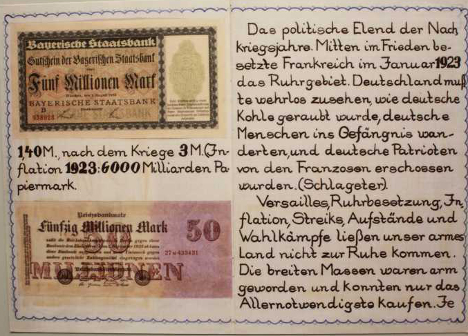 The inflation time was described by the exhibition almost as a natural catastrophe with children cards, although it was entirely men made. The underlying reasons and the most important persons like Schacht and Streseman ,solving the crisis, were not mentioned. Dr. Hjalmar Schacht was the Currency Commissioner and President of the Reichsbank under the Weimar Republic, who later (1930) resigned over disagreements about the reparation negotiations and economic issues with the German government. He fixed pretty single-handed the hyper inflation, to a big degree fueled by foreign currency speculation (besides caused by the crippling reparation payments).The same was true for the deflation time triggered by the Black Friday 1929, which he fixed as well. Schacht, a committed conservative democrat who never been a member of the Nazi Party supported Hitler from 1931 based on the common fight against the treaty of Versailles. He became President of the Reichsbank 1933 again and 1934 Minister of Economics untill he was forced out of the government. Later he went in the resistance against Hitler and thrown in the concentration camp (and from there (!) to the Nuremberg trial).Thirdly omitted was the incredibly economic turnaround engineered from 1934 to 1936. The story in the exhibition went fast forward from 1933 almost starting with the beginning of the war 1941 and the death camps 1942. The time before was hazy, as the structure of the exhibition was organized topic rather than time driven (which makes it easy to confuse people). There is nothing wrong to emphasise on the terrible deeds, but one could get the impression, that totalitarian systems are switched on instantly, like a light bulb and its cruelty and evil intentions are visible to everybody immediately.