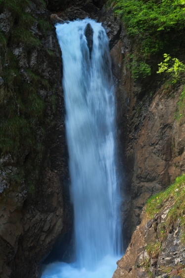 We hiked up a waterfall which carved out a deep canyon in limestone (called wolf gorge / Wolfsklamm). The Wolfsklamm in Karwendel impressed the nature lover with thundering waterfalls, emerald green pools and a rising spray creating rainbows. The strong spring floods, the roar of the stream lead up to the monastery of St. George mountain pilgrimage. We walked further in the nature reserve Karwendel. Just before reaching the Stall Alm, we reached a wide alpine meadow for the open air mass. The monastery of St. George – St. Georgenberg – was a mountain hermitage, which was first mentioned in 950 for the first time in writing. St. George Berg, is the oldest place of pilgrimage throughout the Tyrol. The monastery still exists, it is a place of power and offers personal retreats. We stayed this year down in the large monastery in Fiecht.