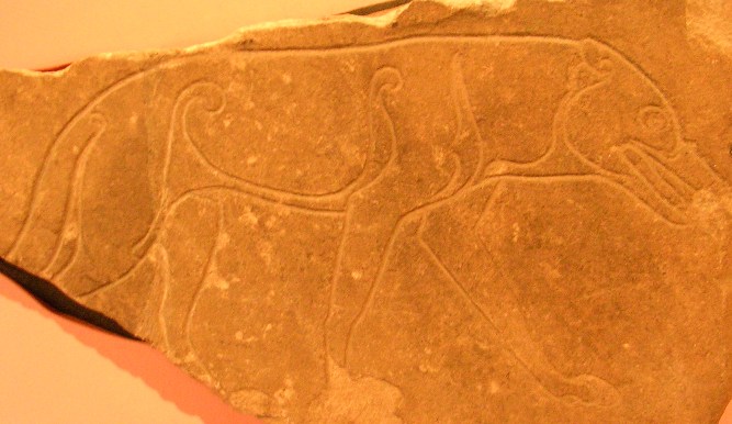 A powerful image, the Pictish Wolf was one of many animals the Picts carved on their stoneworks. The lines, deeply incised on the wolf, express the force instinctive to the nature of the most feared of dogs.