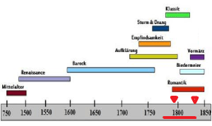 This period is based on an important feature of the Enlightenment: man is portrayed as something good. The most important content-related features of the classical period are: harmony, self-determination, humanity and tolerance, beauty and the French Revolution were influential. In the French Revolution, people advocated that the same rights should apply to all. But the success achieved with the Declaration of Civil and Human Rights did not last long. During the reign of Robespierre, people went through a time of terror and terror. It was not until 1795, after Robespierre was overthrown, that there was a transitional government. This held until four years later, Napoleon came to power and in 1804 even became emperor. He stood after this troubled time for (not feudal) order and security – and for wars and oppression. Meanwhile, significant reforms were initiated in Prussia to liberate and educate the population. At the Battle of Waterloo (1815) Napoleon’s reign ended with his defeat. In the same year, the reorganization of Europe was sealed in the Congress of Vienna, which provided a restoration of the old order before Napoleon’s reign.