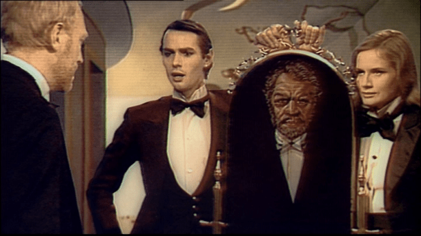 At the level of narrative structure, the film broadly follows the novel. Haller’s existential crisis, his encounter with Hermine, the introduction to Maria, and the progression toward the Magic Theater are all present. The central motifs—alienation, duality (man vs. wolf), and the search for meaning—are preserved. Von Sydow’s performance, in particular, captures the severity, rigidity, and underlying despair of Haller’s ego-consciousness with considerable precision. His portrayal aligns well with a Jungian reading of a hypertrophied, overly intellectual ego cut off from instinct and feeling.